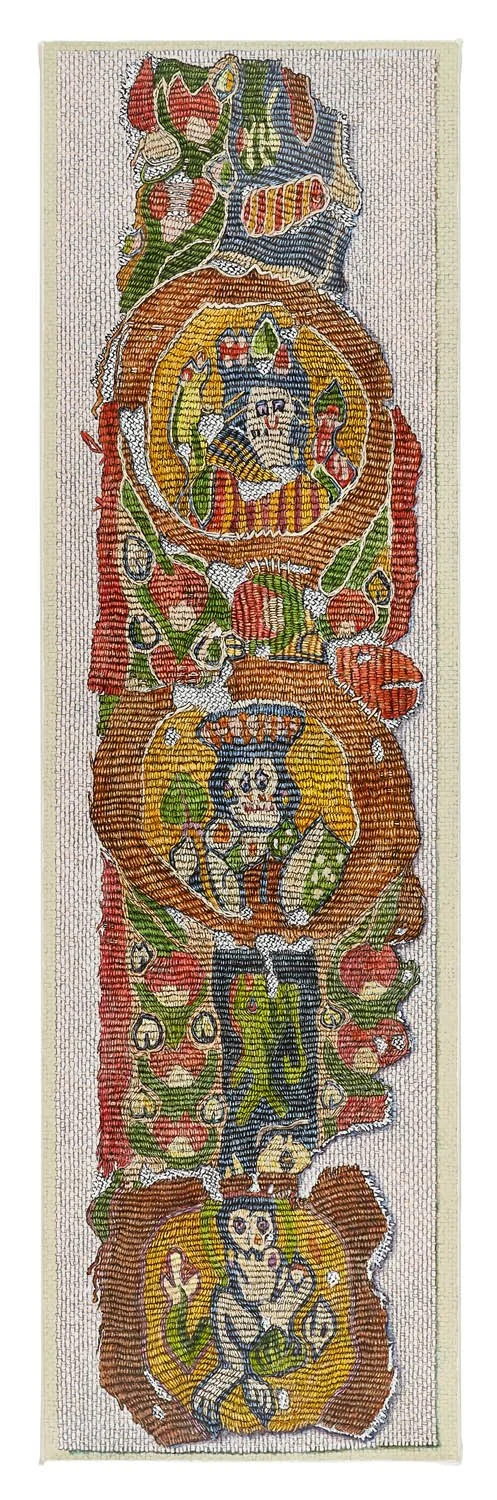 Homage to Wari Weaving , 2022. Acrylic on canvas. 78 x 44 inches. [Private Collection]